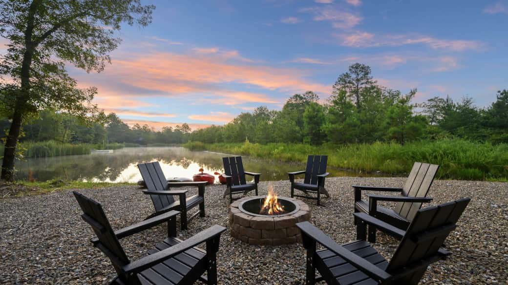 🎣 Cast a line in your private stocked pond or paddle a kayak beneath towering pines. Inside, floor-to-ceiling windows fill the cabin with light, and two king suites with spa-style showers offer pure comfort. Enjoy the hot tub, outdoor fireplace, and cozy living spaces at this pet-friendly Broken Bow retreat for up to 12 guests.